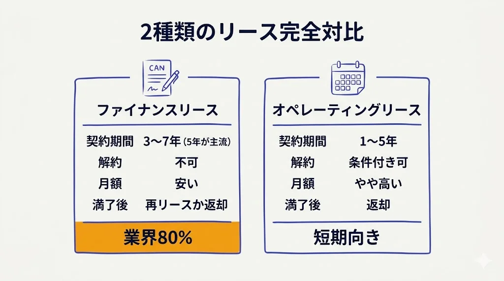 | 契約期間 | 3〜7年(5年が主流) | 1〜5年(短期が多い) |