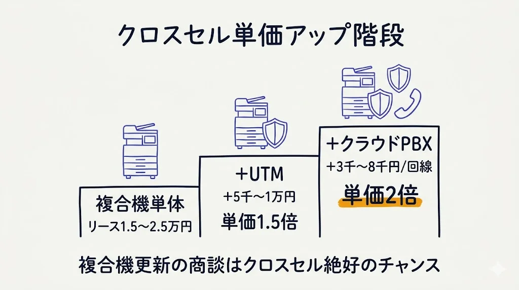 コツ3 — 複合機+UTMのセット提案で単価を上げる