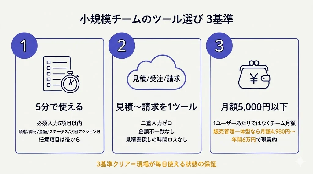小規模チームの営業管理ツール選び — 3つの基準