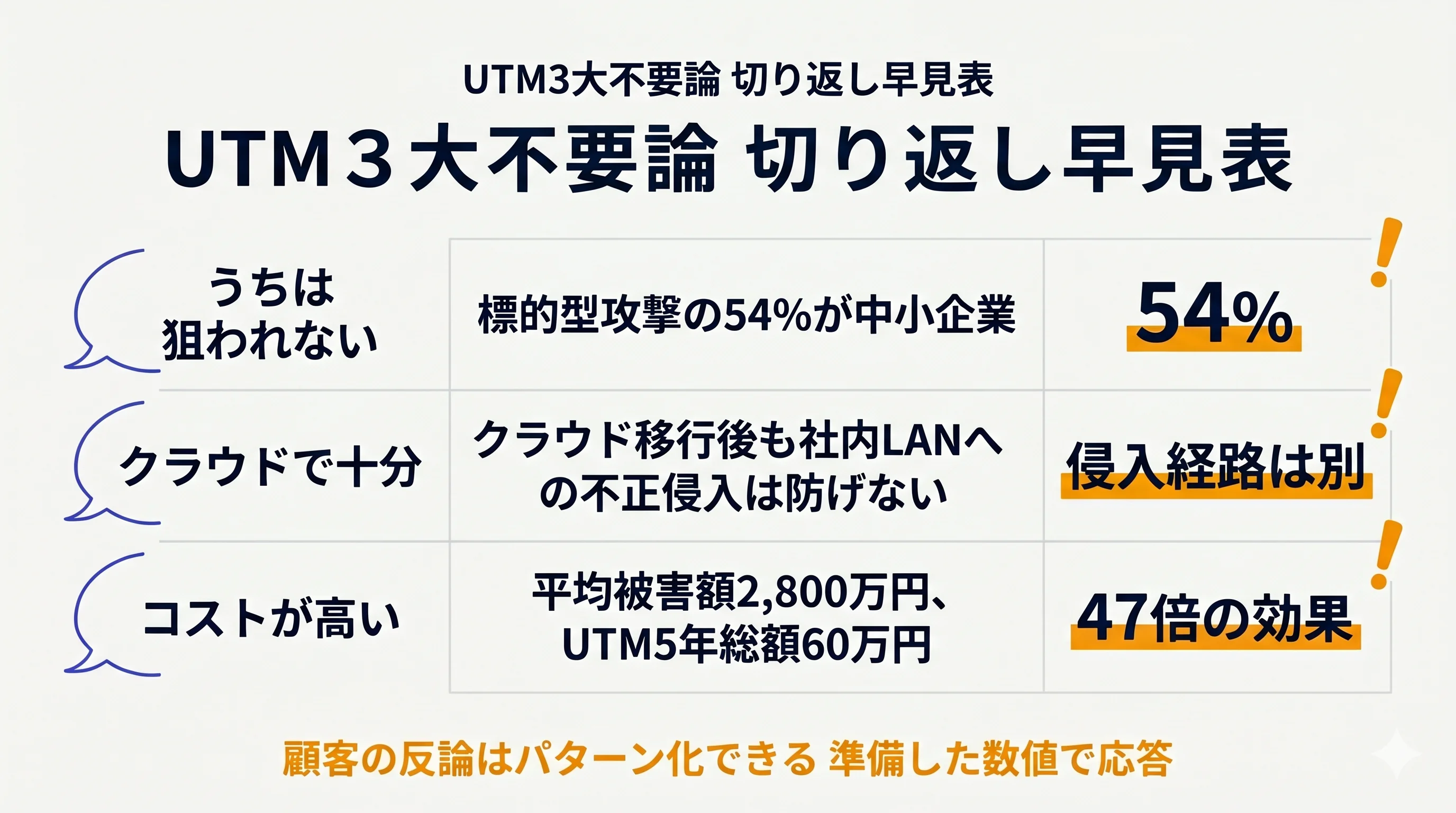 「UTMって本当に必要なの?うちみたいな中小企業が狙われるわけないじゃん」——顧客からのこの一言で、提案を撤退してしまっていませんか。